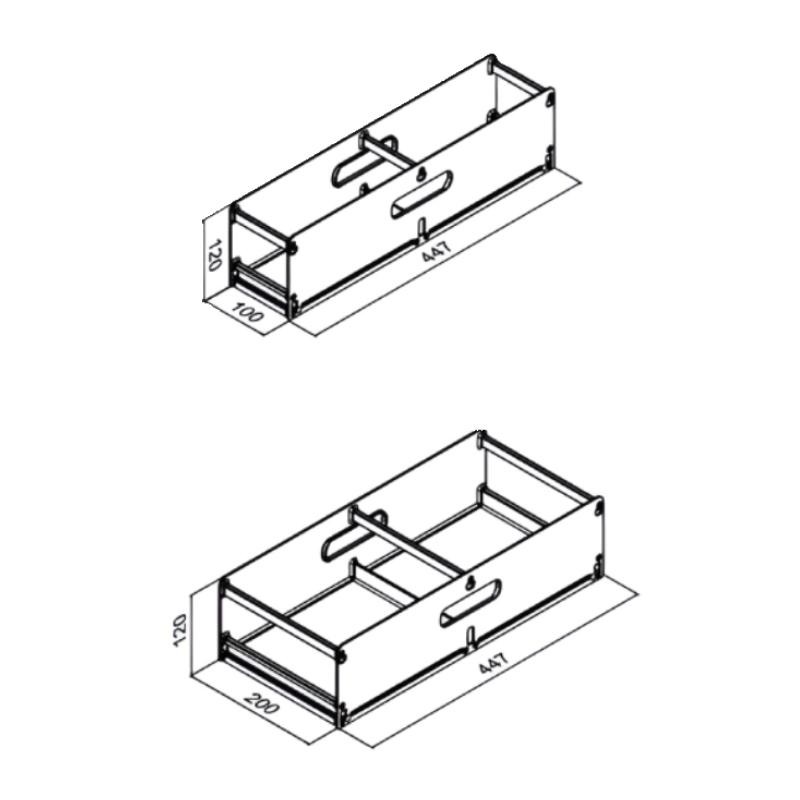Con una profundidad de 447 mm, el FlexBox es compatible con todos los sistemas de cajones del mercado, lo que lo convierte en una solución universal para la organización del espacio interior.