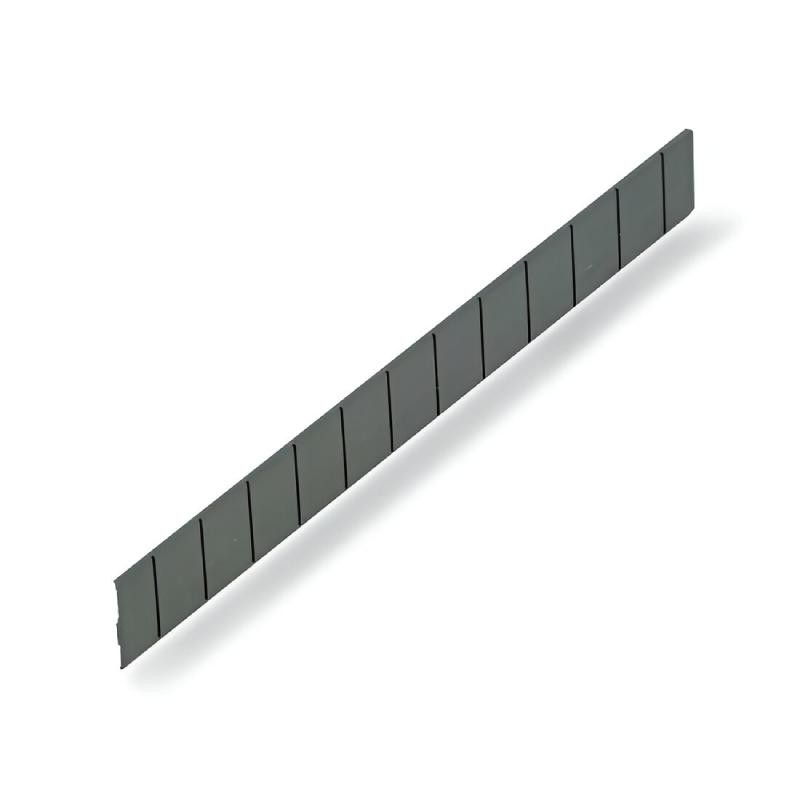 El set incluye 2 perfiles, 5 divisiones metálicas y 1 tapete antideslizante negro recortable de 900 mm. Al realizar el pedido es necesario indicar el modelo de cajón y la medida del costado del mueble (16 mm o 19 mm).