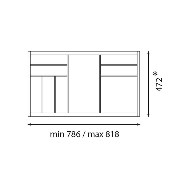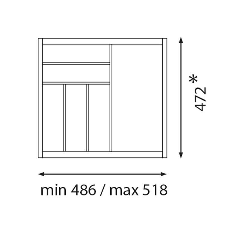 Las dimensiones totales del porta-cubiertos (ancho x fondo x alto) según la anchura de mueble con el que es compatible son las siguientes:
