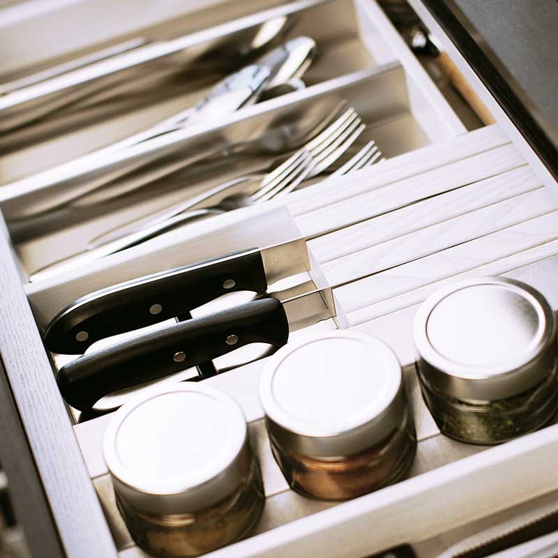 Ampliar Portacuchillos de madera para cubertero de cocina modelo Premiere. Disponible en color blanco o antracita. Dimensiones: 110 x 423 x 38 mm.