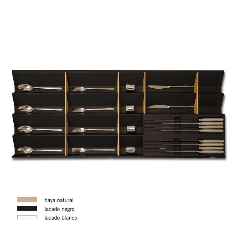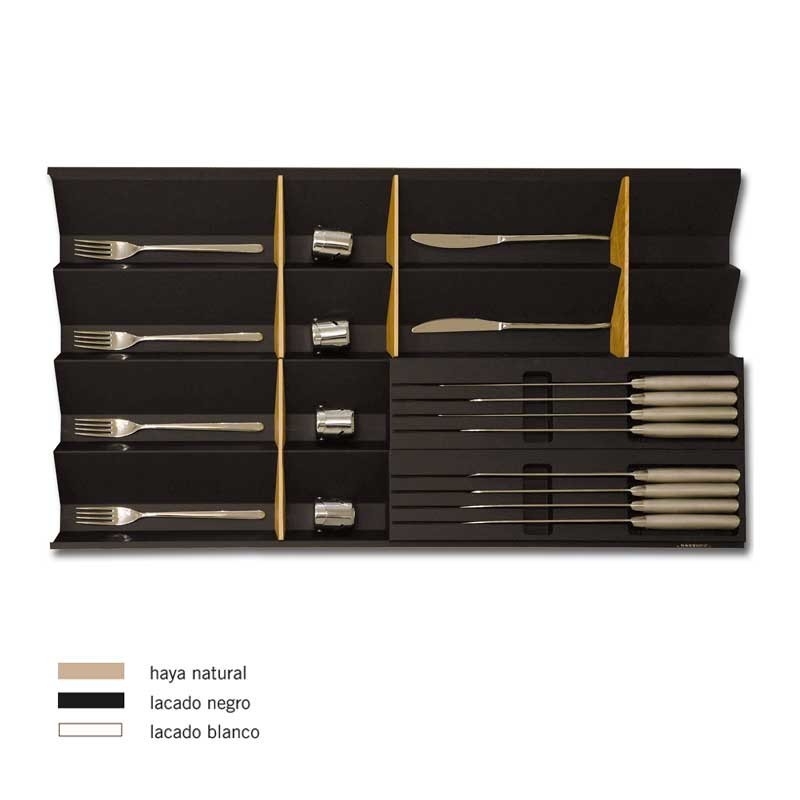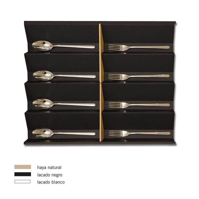 Ampliar Cubertero de madera modelo Marea para cajones de cocina. Disponible en 3 colores a elegir, y para diferentes medidas de mueble. No incluye divisores ni portacuchillos.