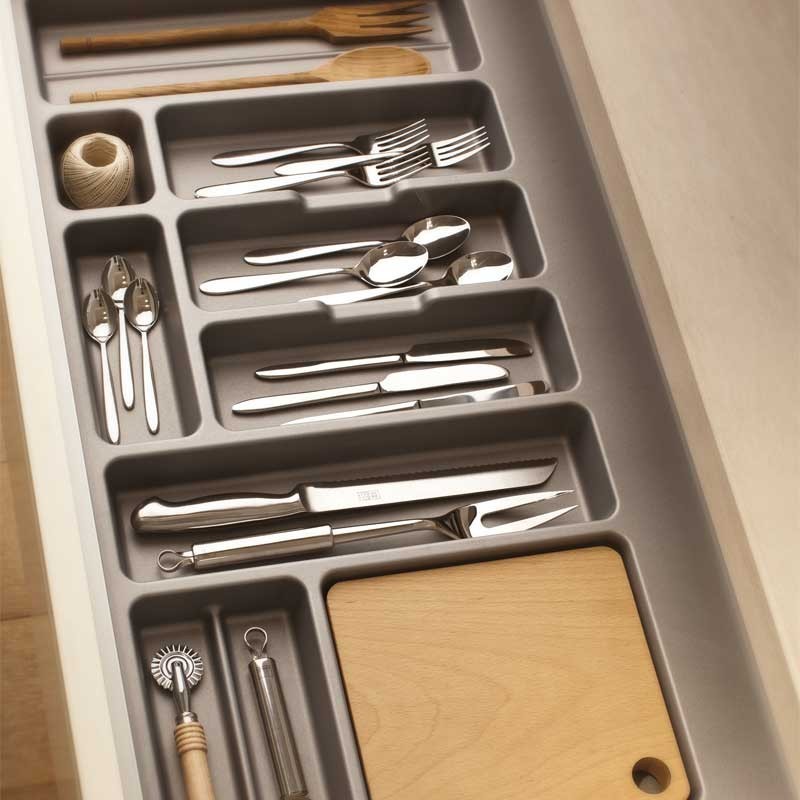 Ampliar Cubertero de ABS modelo Classic con tacto seda soft en color gris orión para cajón de cocina. Disponible en diferentes medidas. No incluye cubiertos.