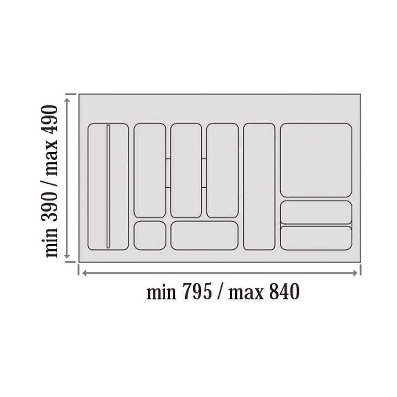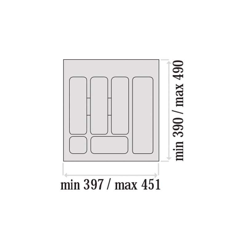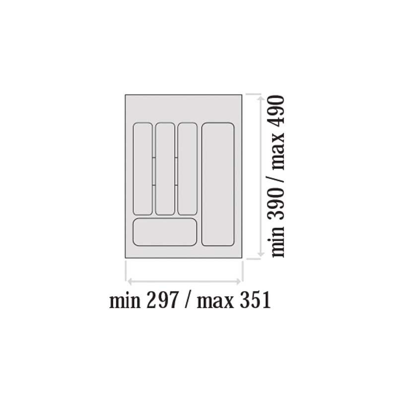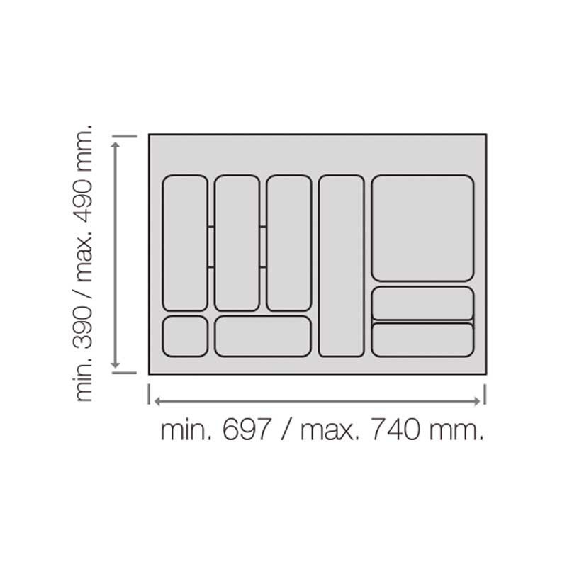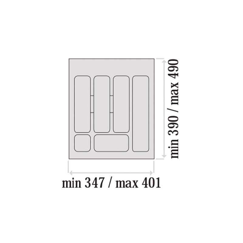 Las dimensiones totales del porta-cubiertos (ancho x fondo x alto) según la anchura de mueble con el que es compatible son las siguientes: