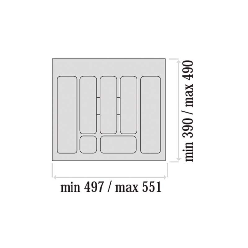 El porta-cubiertos Classic se puede adaptar en ancho y fondo recortándolo de forma sencilla para ajustarlo a nuestro cajón de cocina.
