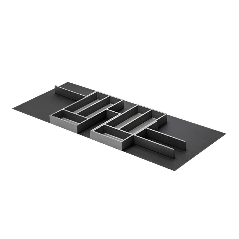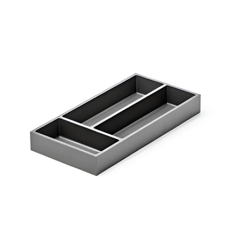 Connect es un sistema modular pensado para crear distribuciones totalmente personalizadas dentro del cajón. Todos los componentes —cuberteros y divisores— se unen mediante conectores, permitiendo configurar la forma final según las necesidades del usuario. Su diseño independiente de los laterales del cajón lo hace compatible con cualquier ancho, profundidad y sistema de guías.