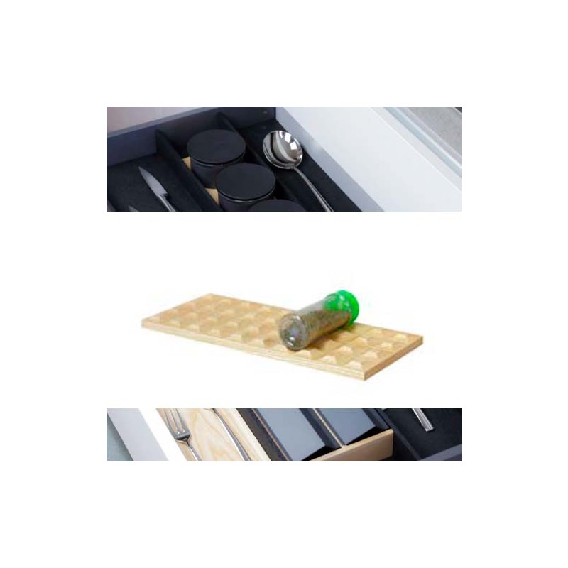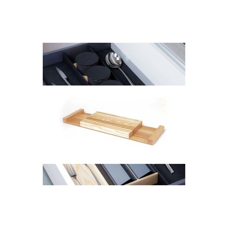 La unión de los 2 materiales hace que sean muy agradables a la vista, y aportan al cajón una calidez y elegancia que sólo estos cuberteros les pueden dar.