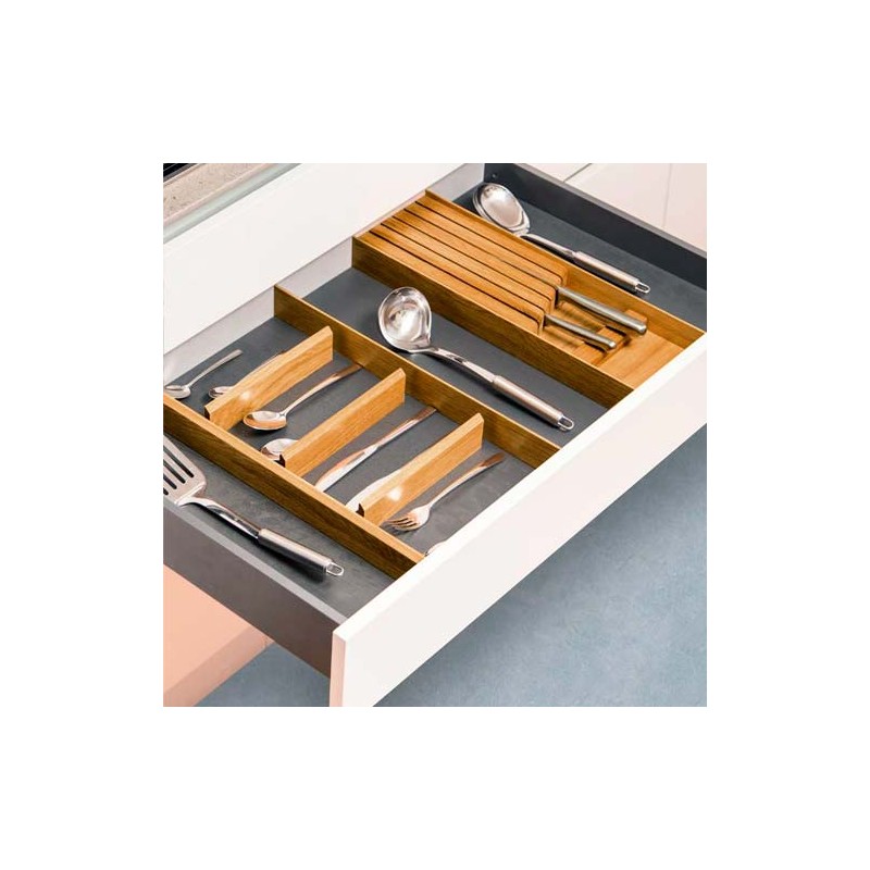 Ampliar Cuberteros Mix, cuberteros fabricados con separaciones de madera de roble de 9 mm. Para cajones de 1000 mm. Indicar modelo o medidas interna del cajón.