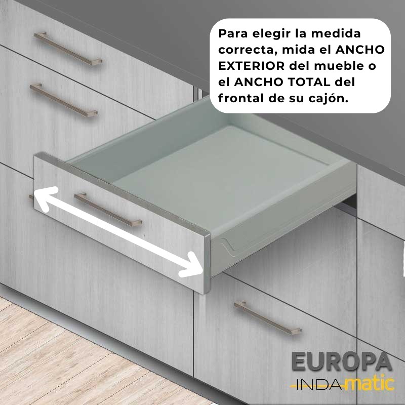 Atención: para escoger la medida correcta, mida el ancho total del frontal de madera de su cajón.