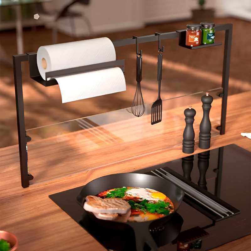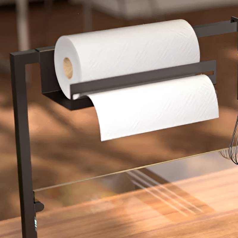 Portarrollos Spraying Protection One es un accesorio oficial perteneciente a la colección Linero Spraying Protection One, diseñado para fijarse en la estructura de aluminio con acabado en negro mate. Este portarrollos permite tener el papel de cocina siempre disponible y al alcance.