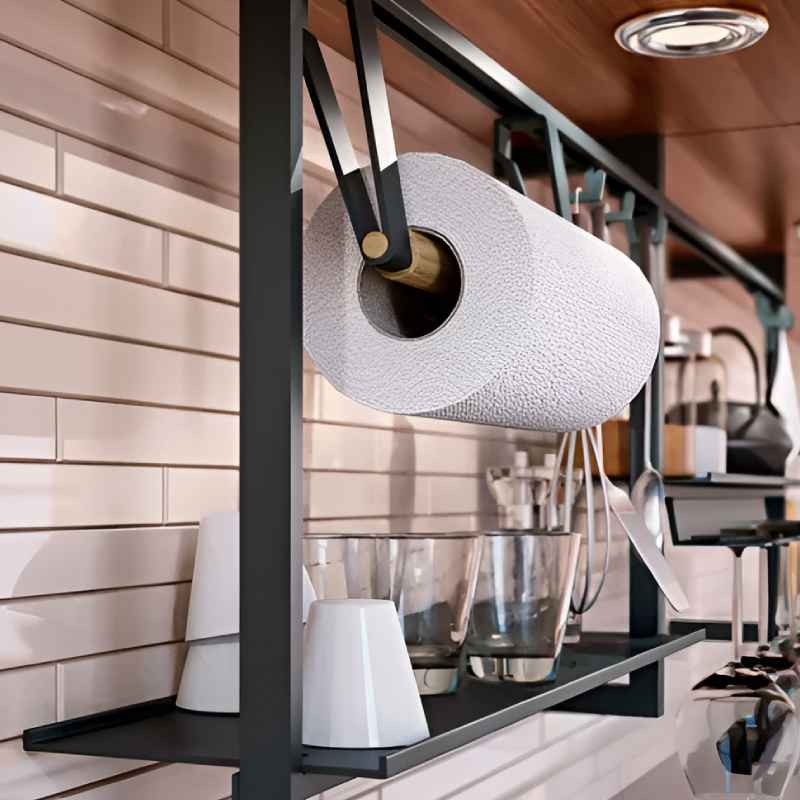 Ampliar También puedes agregar un portarollos a tu sistema Linero UP y tener a mano el papel de cocina en una urgencia o cuando se derrama algo en el área de trabajo.