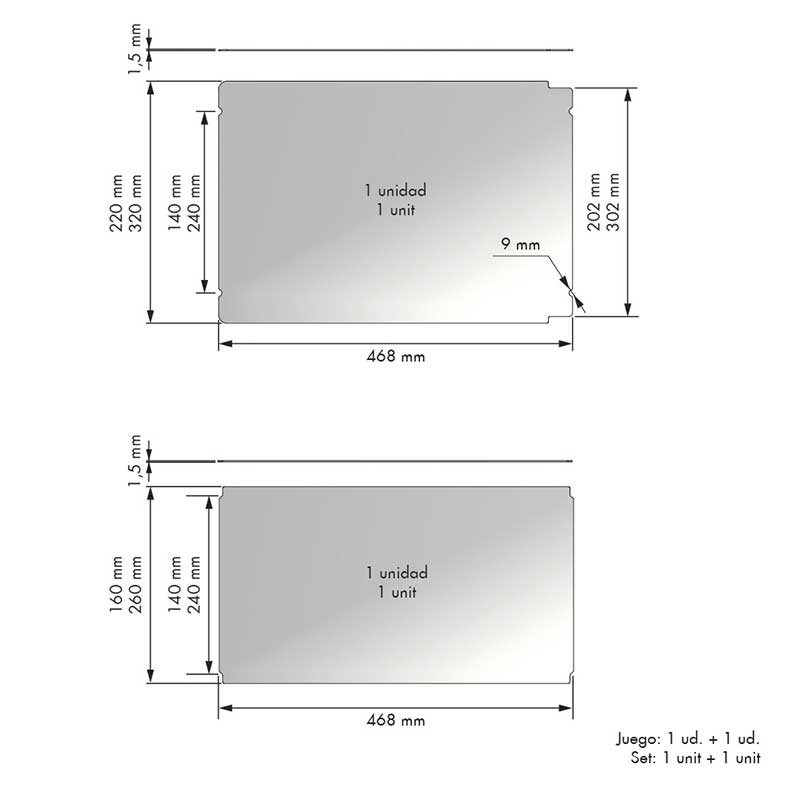 Ampliar Juego de bases fabricadas en poliestireno color gris para colocar en módulo botellero extraible frontal de la Línea Clásica.