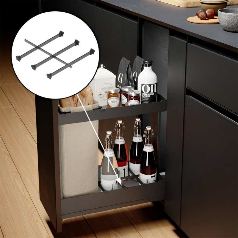 Ampliar Separador de botellas 2x3 Nova Flat en acero antracita y poliamida, diseñado para sistemas extraíbles de cocina Menage Confort
