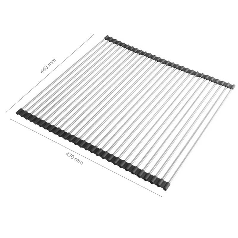Ampliar Roll-UP Escurridor para fregadero enrollable de acero inoxidable y goma de silicona negra de varilla cuadrada de medidas 470x440 mm