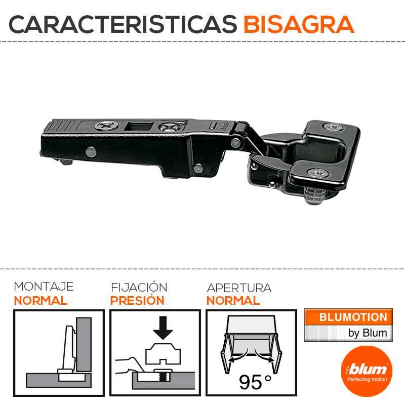 Ampliar Bisagra CLIP Top sin muelle, con ángulo de apertura de 95º y acabado negro ónix para puertas gruesas o puertas con perfiles.