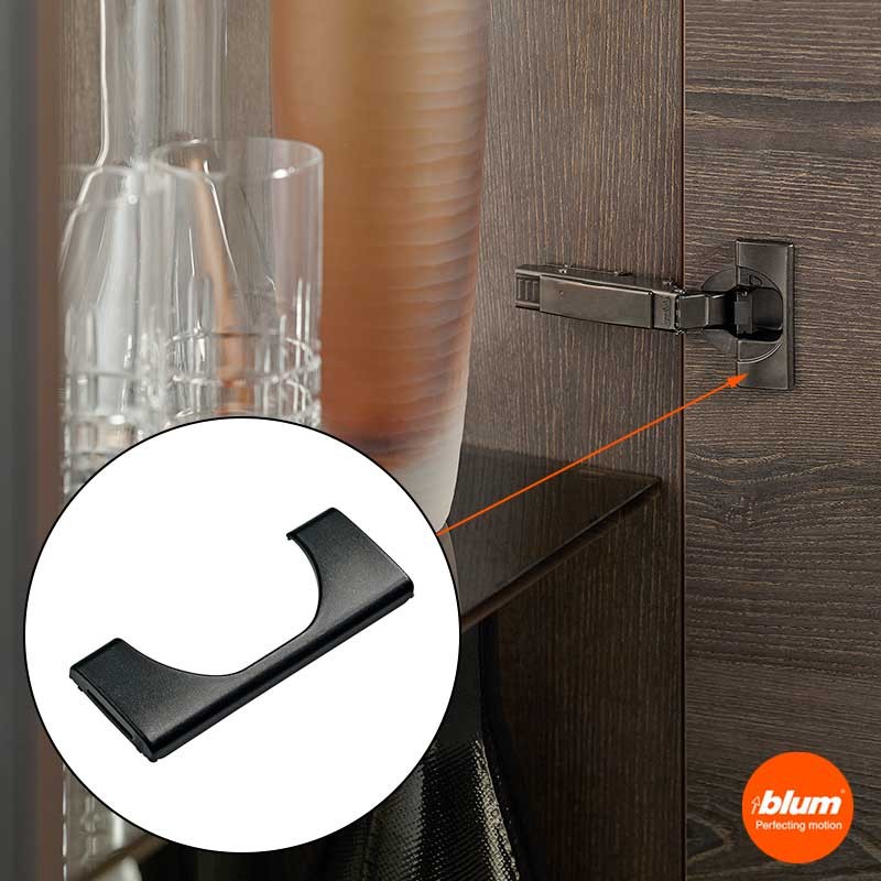 Ampliar Embellecedor tapa de acero color negro ónix para montar a presión sobre la cazoleta de bisagras CLIP Top y CLIP Top BLUMOTION de Blum.