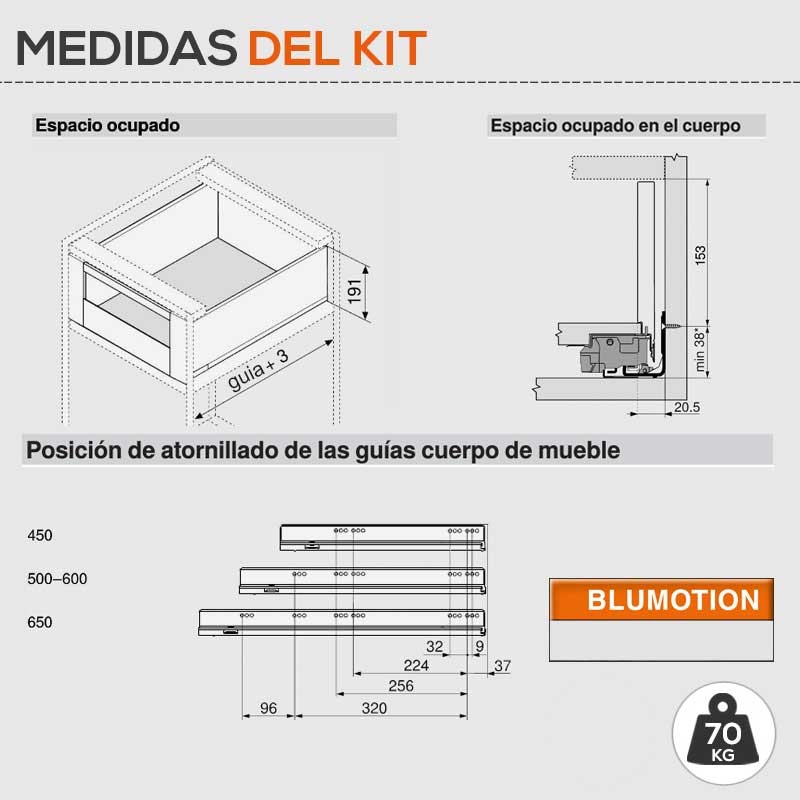 - Sistema BLUMOTION integrado para lograr que los cajones se cierren de forma suave y silenciosa