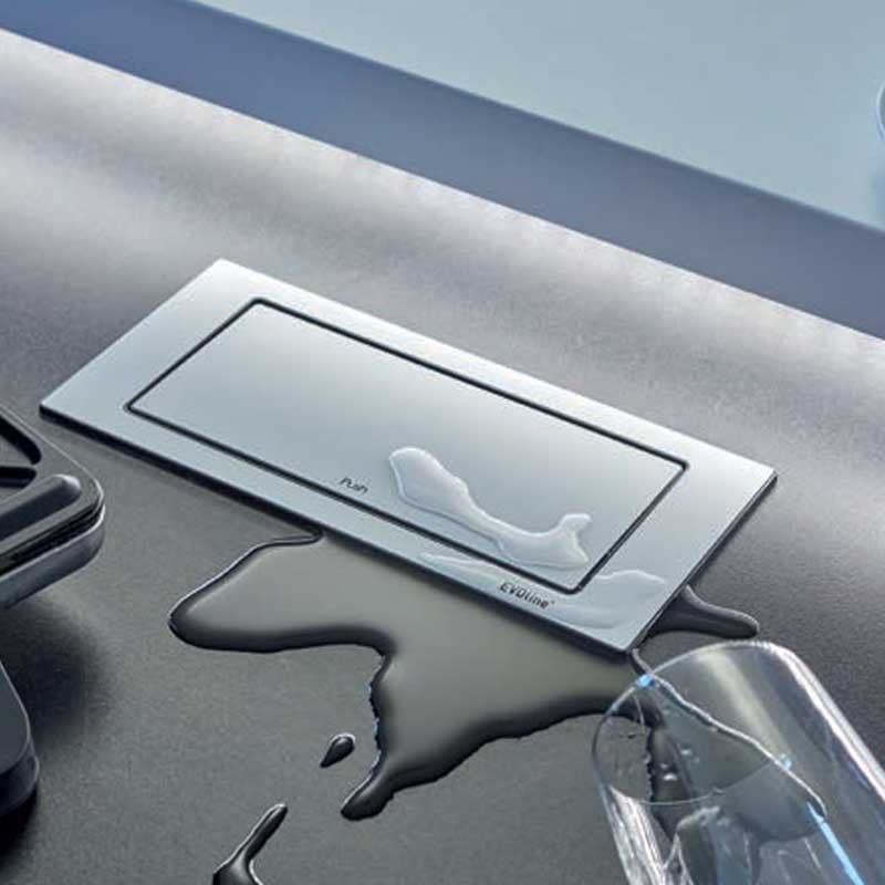 Energy box con 2 enchufes y 1 USB cargador, ideal para encastrar en prácticamente todas las encimeras, puesto que sólo tiene 53 mm de profundidad.