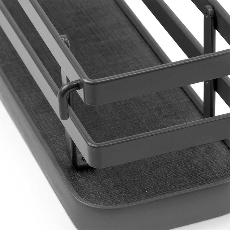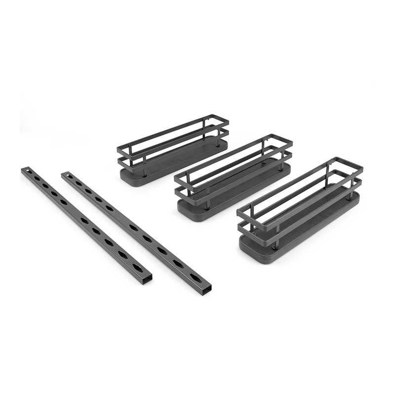 Está compuesto por 3 estantes y 2 perfiles con múltiples agujeros que permiten variar la posición de los estantes. La instalación de los perfiles es muy sencilla por medio de tornillos (incluidos).