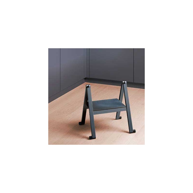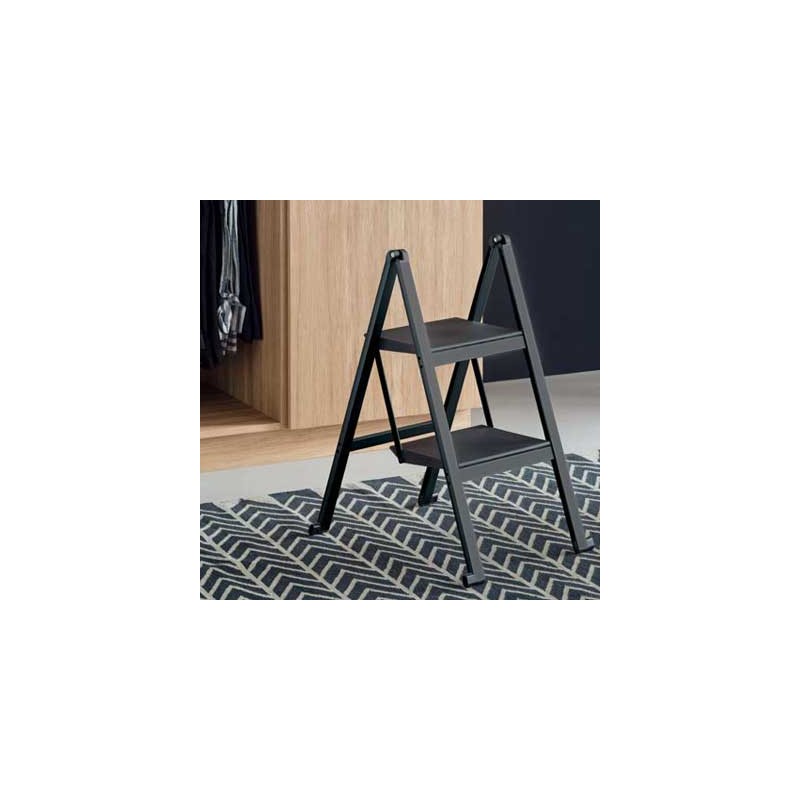 Ampliar Práctica escalera para mayor seguridad en el hogar. Diseño robusto y elegante en aluminio anodizado negro. Espesor mínimo al estar plegada 37 mm. Peldaños con superficie antideslizante.
