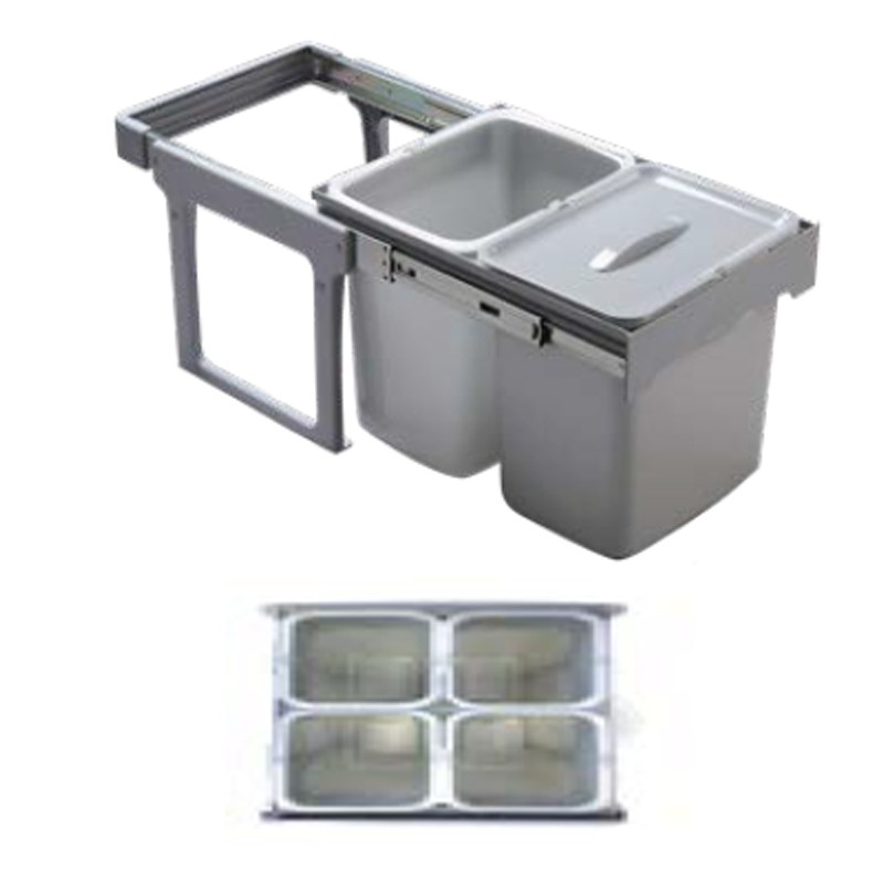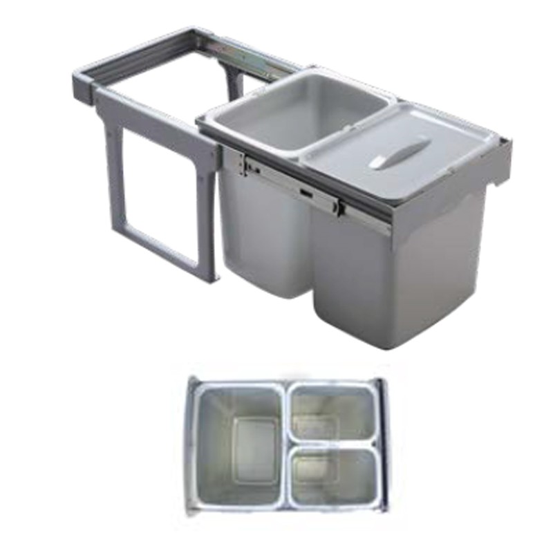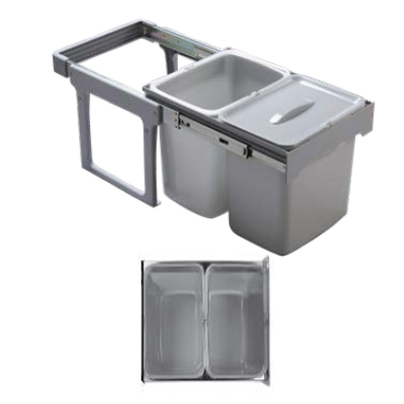 La estructura de estos cubos de basura, se fija a la parte inferior (base) de los muebles de cocina, permitiendo una suave extracción de los cubos de forma manual gracias a las guías laterales que incorpora en su parte superior.