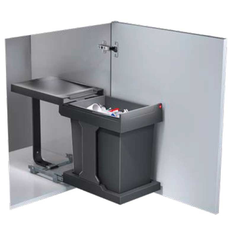 La estructura de estos cubos de basura, se fija a la parte inferior (base) de los muebles de cocina, permitiendo una suave extracción de los cubos de forma manual gracias a las guías laterales que incorpora en su parte superior. La tapa quedará fija en el interior del mueble, evitado tener que levantarla manualmente.