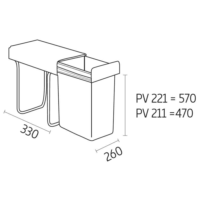 La estructura de estos cubos de basura, se fija a la parte inferior (base) de los muebles de cocina, permitiendo una suave extracción de los cubos de forma manual gracias a las guías laterales que incorpora en su parte superior. La tapa quedará fija en el interior del mueble, evitado tener que levantarla manualmente.