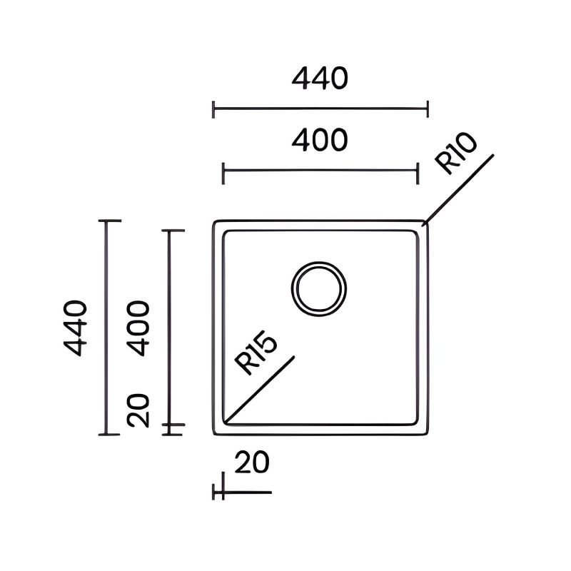 Ampliar Fregadero de acero inoxidable modelo Ferrara Plus de 440 x 440 mm para instalación bajo encimera, enrasada o filotop a elegir.