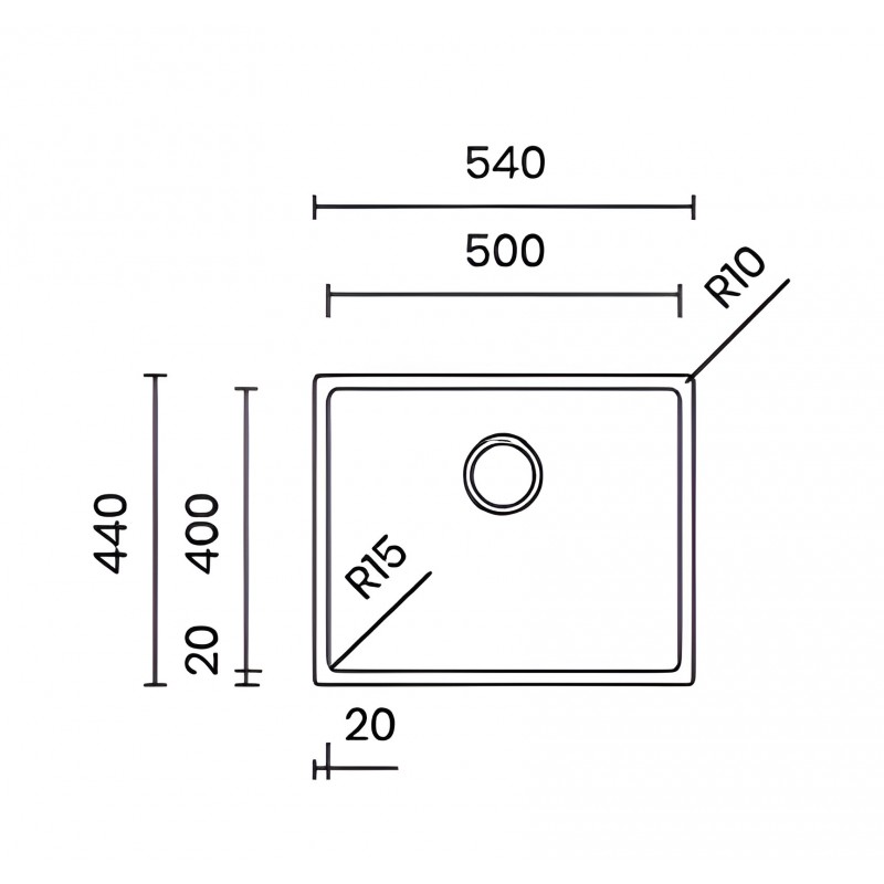 Ampliar Fregadero de acero inoxidable modelo Ferrara Plus de 540 x 440 mm para instalación bajo encimera, óptica enrasada o filotop a elegir.