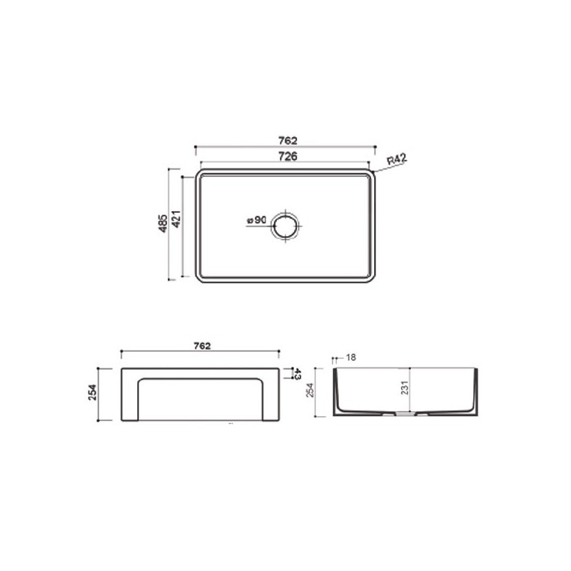 Ampliar Fregadero blanco de cerámica modelo Lagoon 30 de 762 x 485 mm para instalación sobre encimera o bajo encimera.
