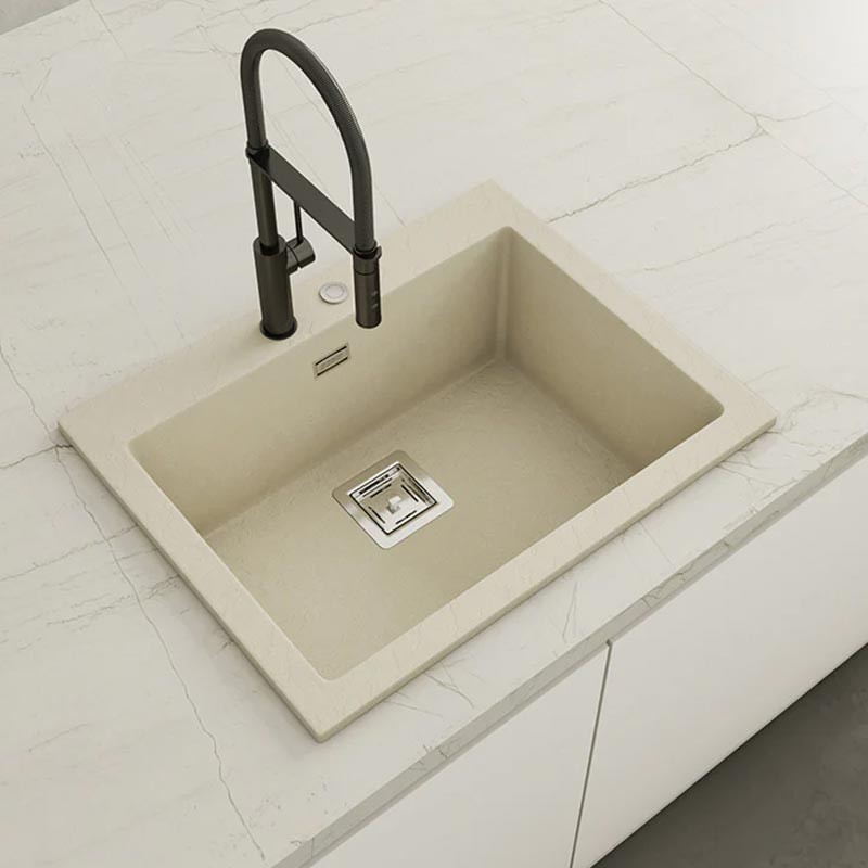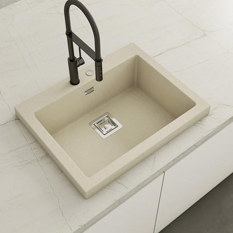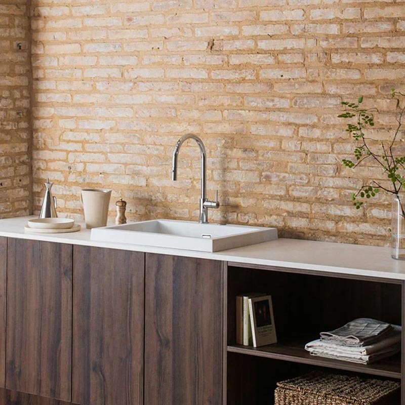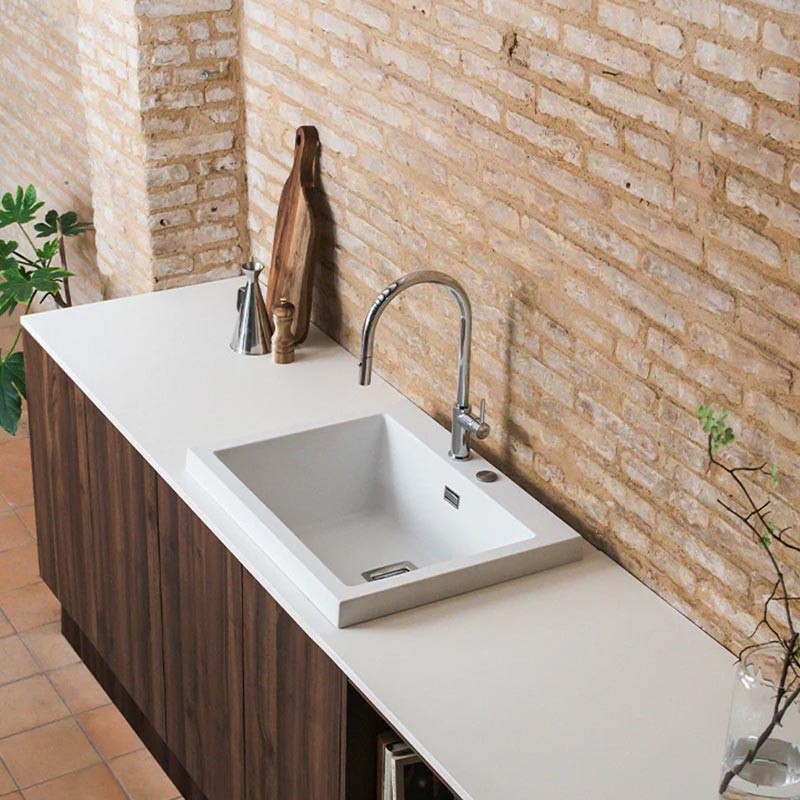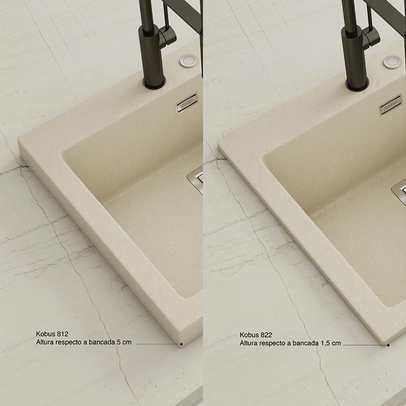 Fabricado por Poalgi en su material en masa Hekla®, este fregadero de granito otorga una amplia y confortable zona de trabajo resistente a factores externos. Además, su colocación sobre encimera ofrece dos alturas diferentes para adaptarse al estilo de tu cocina.