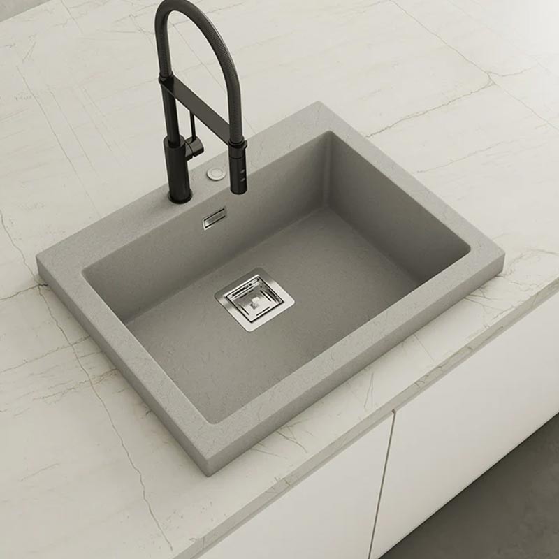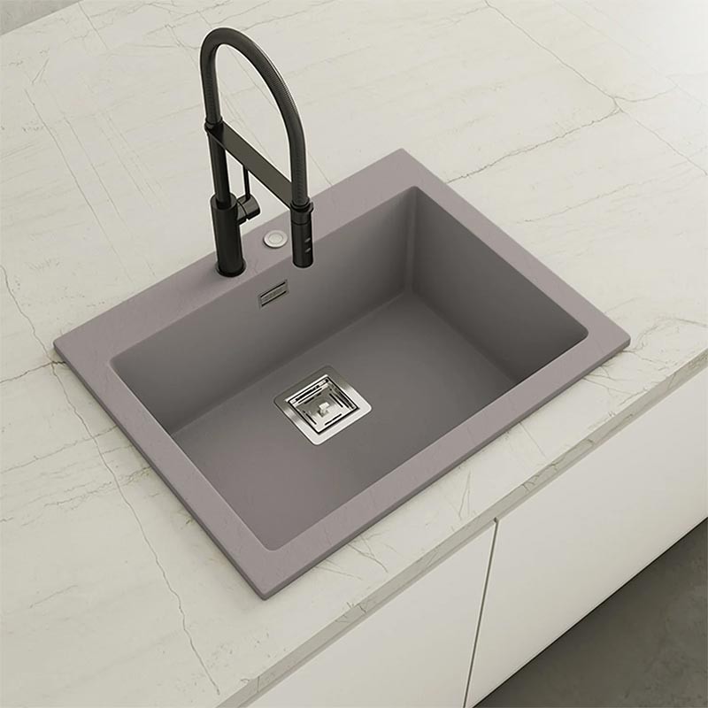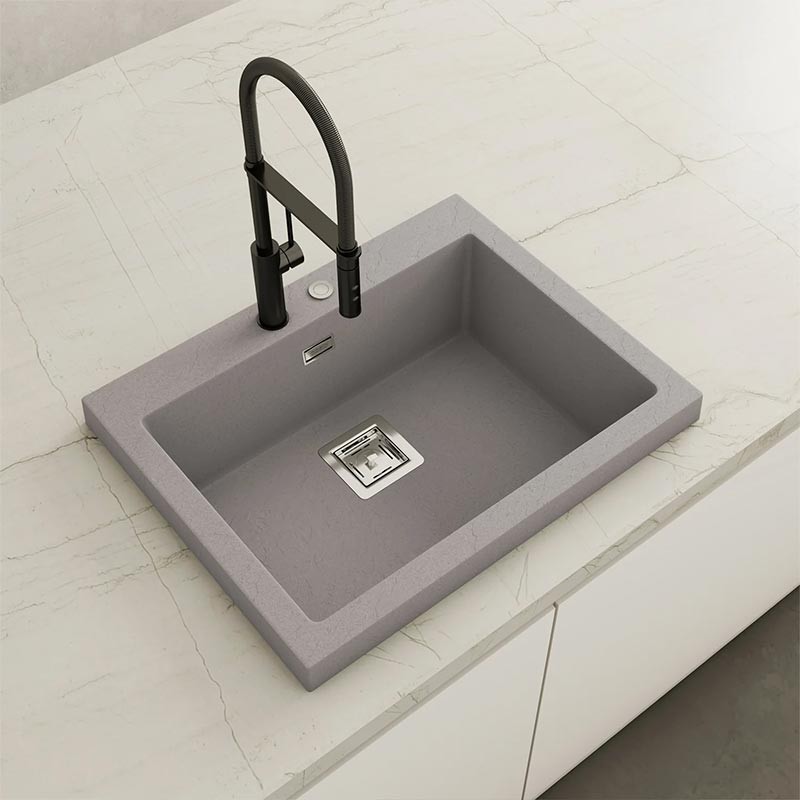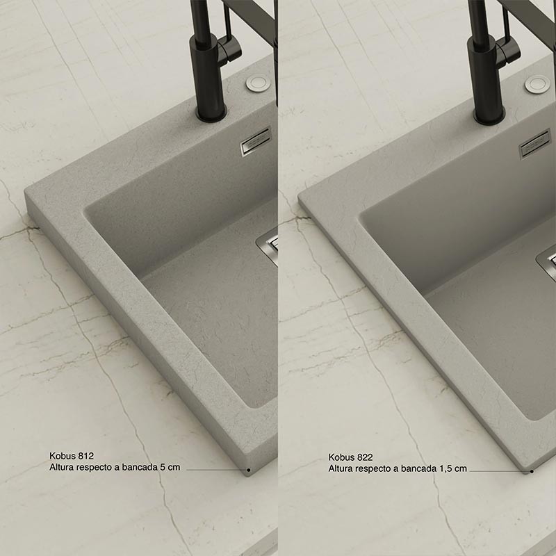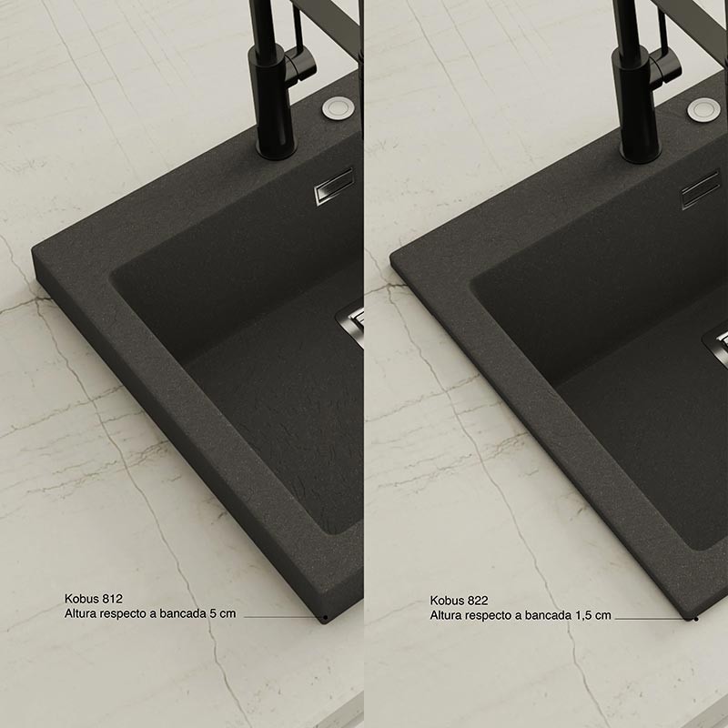 Ampliar Fregadero de granito Hekla® modelo Kobus con textura pizarra mate para montaje sobre encimera en muebles de al menos 70 cm de ancho.