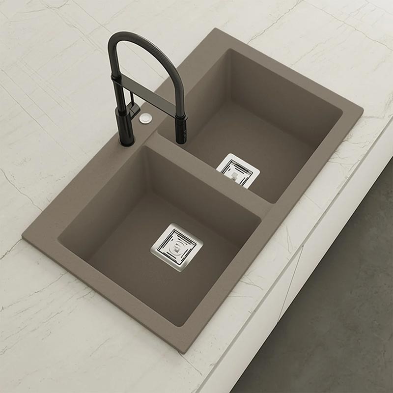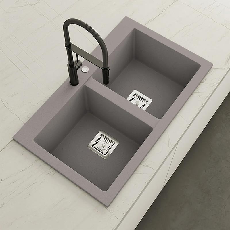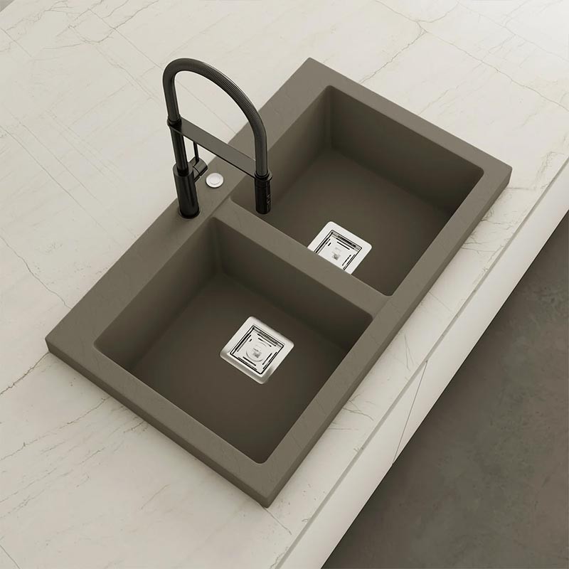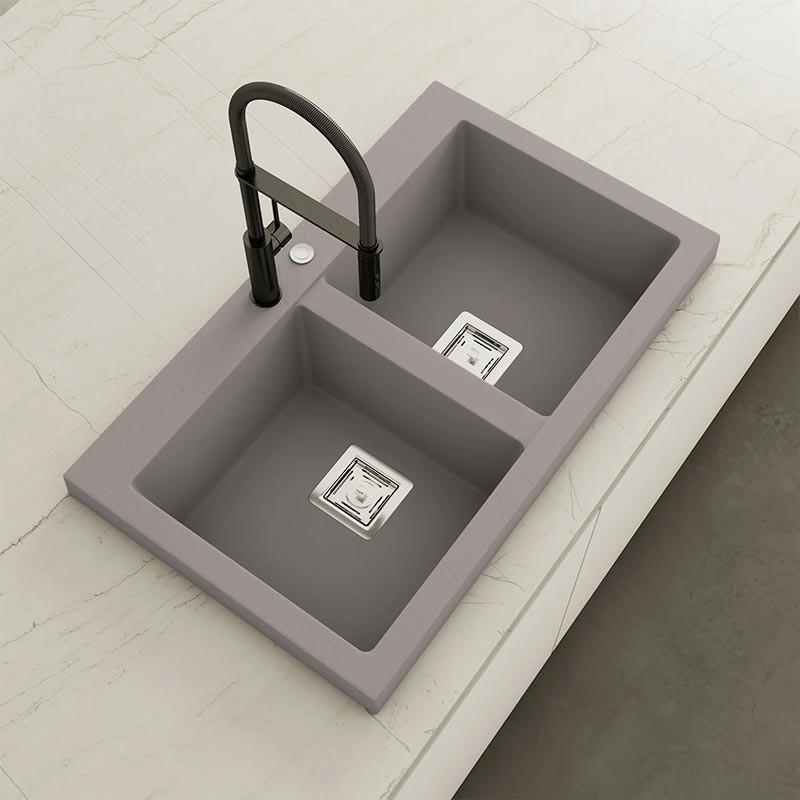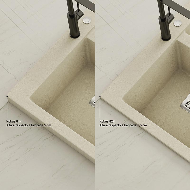 Fabricado por Poalgi en su material en masa Hekla®, este fregadero de granito otorga una amplia y confortable zona de trabajo resistente a factores externos. Además, su colocación sobre encimera ofrece dos alturas diferentes para adaptarse al estilo de tu cocina.