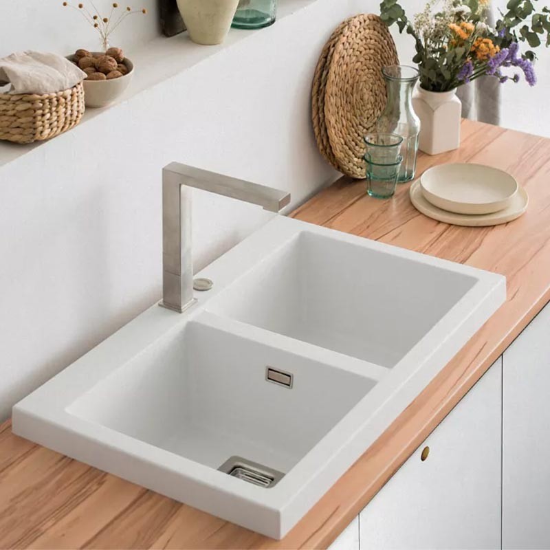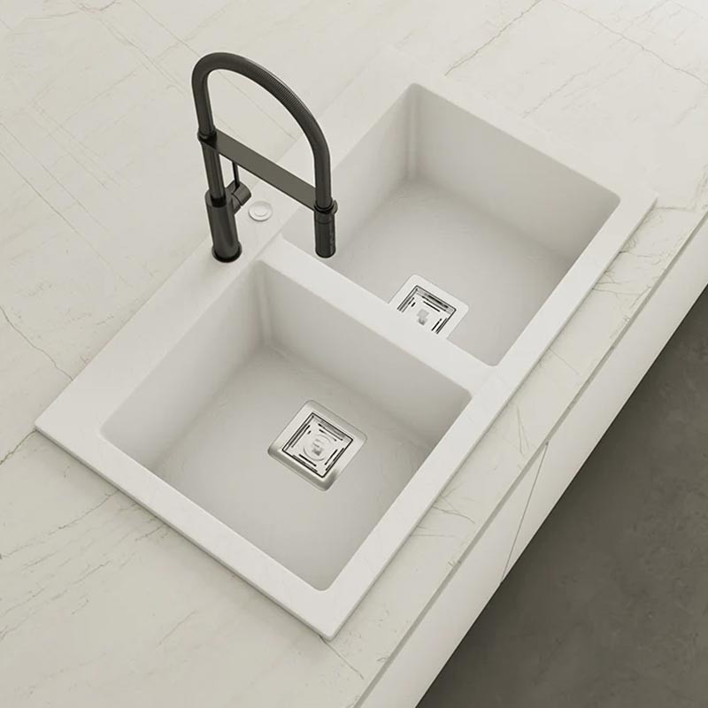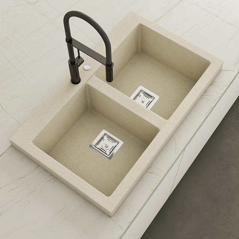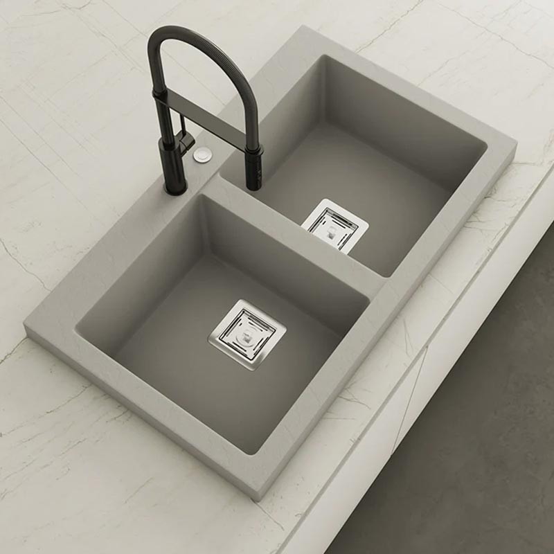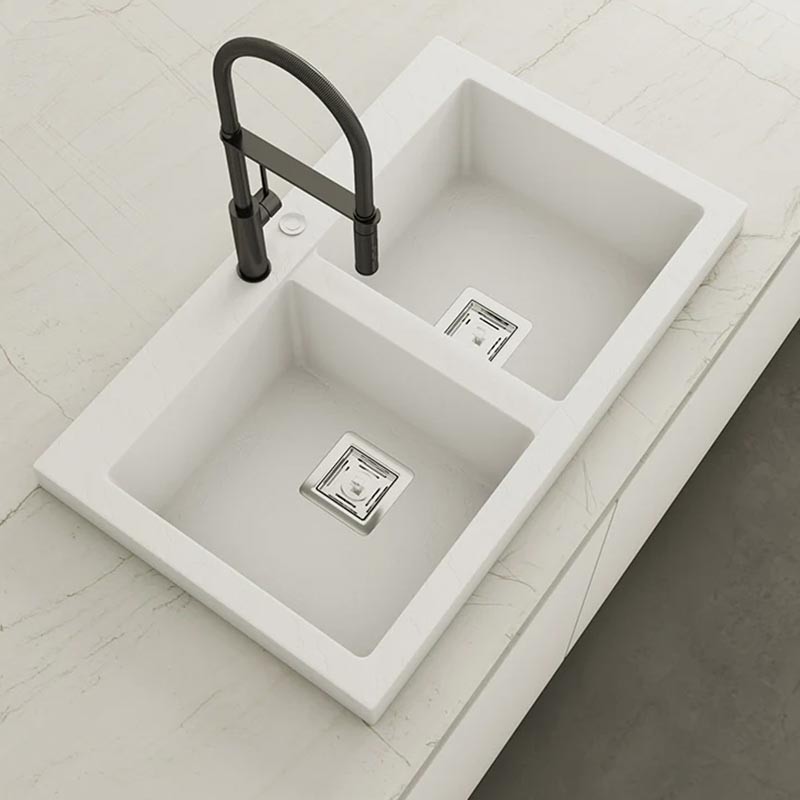 Fabricado por Poalgi en su material en masa Hekla®, este fregadero de granito otorga una amplia y confortable zona de trabajo resistente a factores externos. Además, su colocación sobre encimera ofrece dos alturas diferentes para adaptarse al estilo de tu cocina.