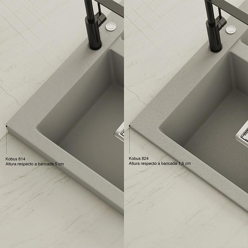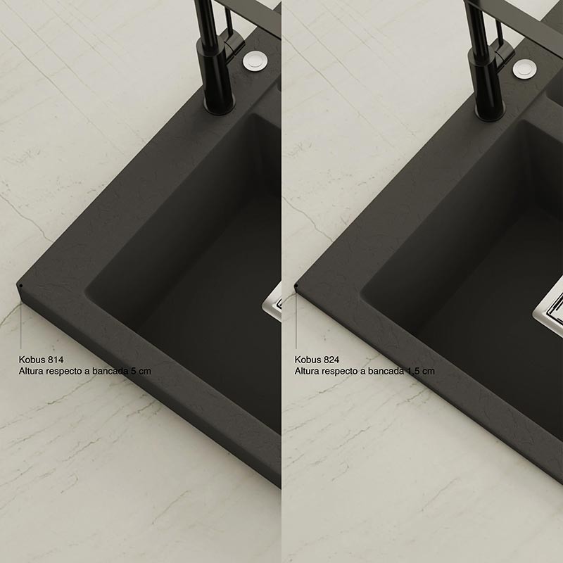 Ampliar Fregadero de granito Hekla® modelo Kobus con textura pizarra mate para montaje sobre encimera en muebles de al menos 90 cm de ancho.