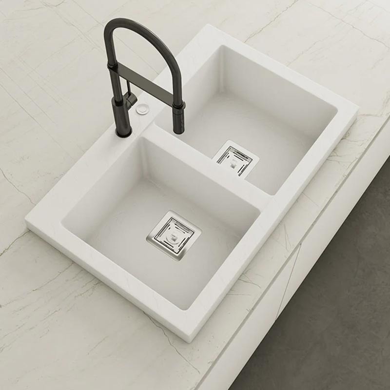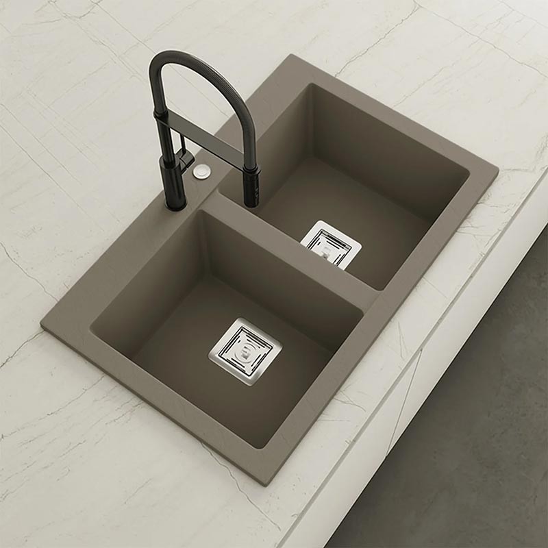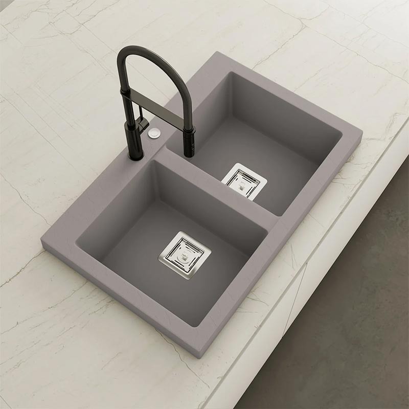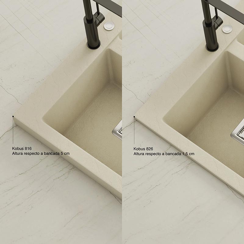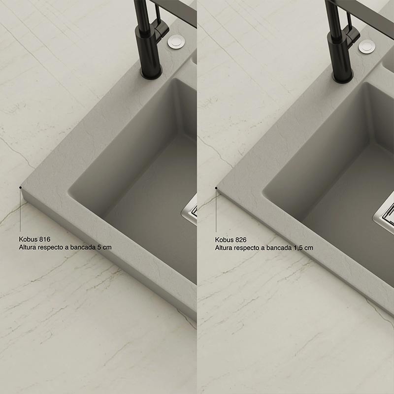 Fabricado por Poalgi en su material en masa Hekla®, este fregadero de granito otorga una amplia y confortable zona de trabajo resistente a factores externos. Además, su colocación sobre encimera ofrece dos alturas diferentes para adaptarse al estilo de tu cocina.