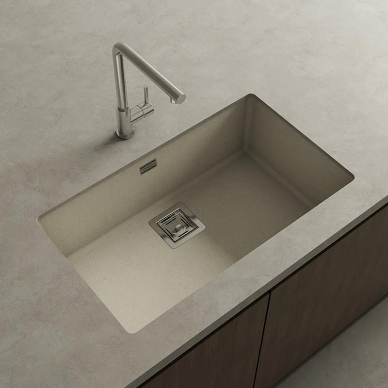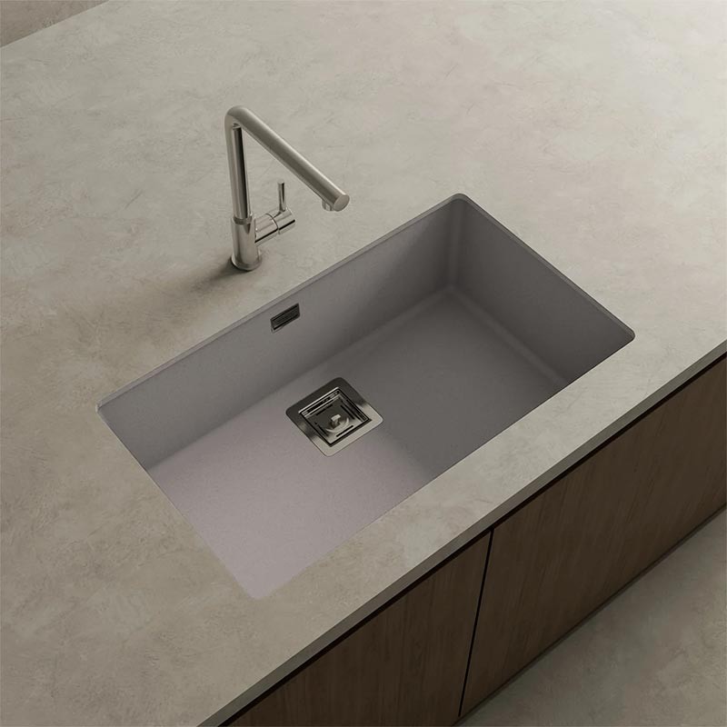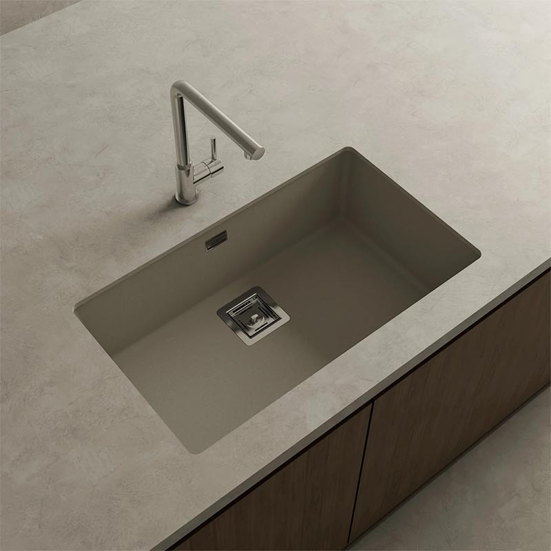 Ampliar Fregadero de granito Hekla® modelo Zie 70 acabado mate para montaje bajo encimera o sobre encimera en muebles de 80 cm mínimo.