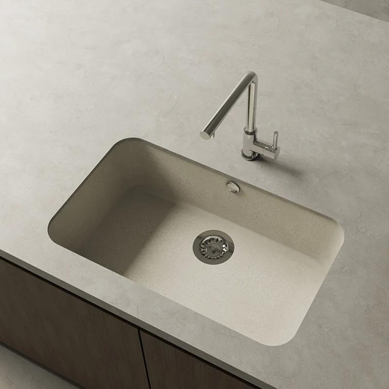 Fabricado por Poalgi en su material en masa Hekla®, este fregadero de granito ofrece diseño, calidad y una zona de trabajo resistente a factores externos.