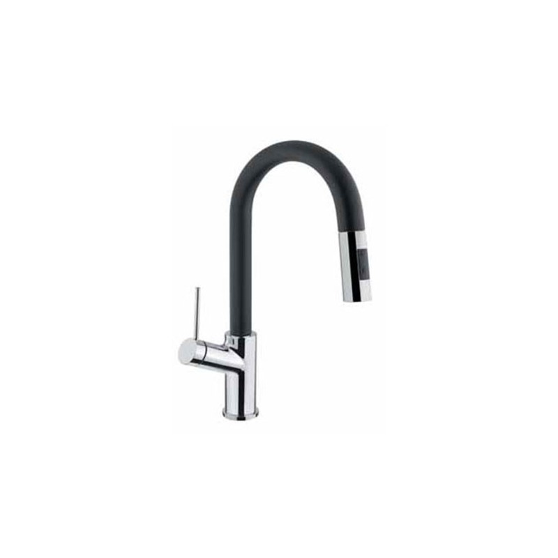 Ampliar Grifo de cocina modelo Viva D30 de tipo monomando, ducha extraible y diseño italiano en acero inoxidable acabado cromo brillo y negro.