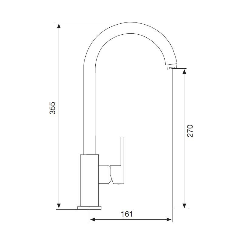 Grifo monomando modelo Mar de 35,5 cm de altura y acabado cromado para fregadero de cocina. Cartucho cerámico de 25 mm. Instalación vertical sobre repisa.