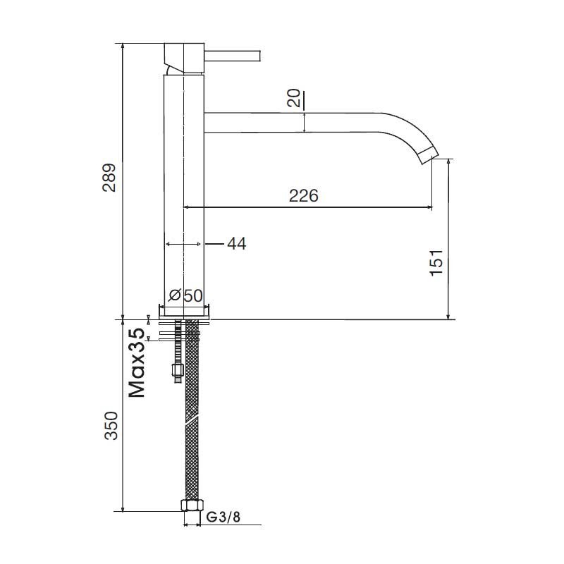 Grifo monomando modelo Dalia de 28,9 cm de altura y acabado cromado para fregadero de cocina. Cartucho cerámico de 35 mm. Instalación vertical sobre repisa.