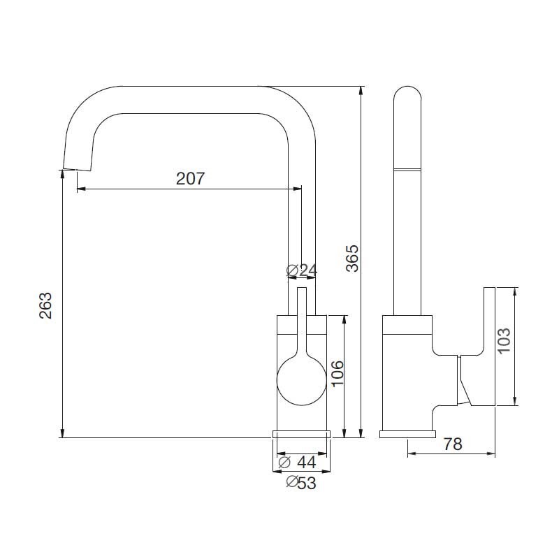 Grifo monomando modelo Salomé de 36,5 cm de altura y acabado cromado para fregadero de cocina. Cartucho cerámico de 35 mm. Instalación vertical sobre repisa.