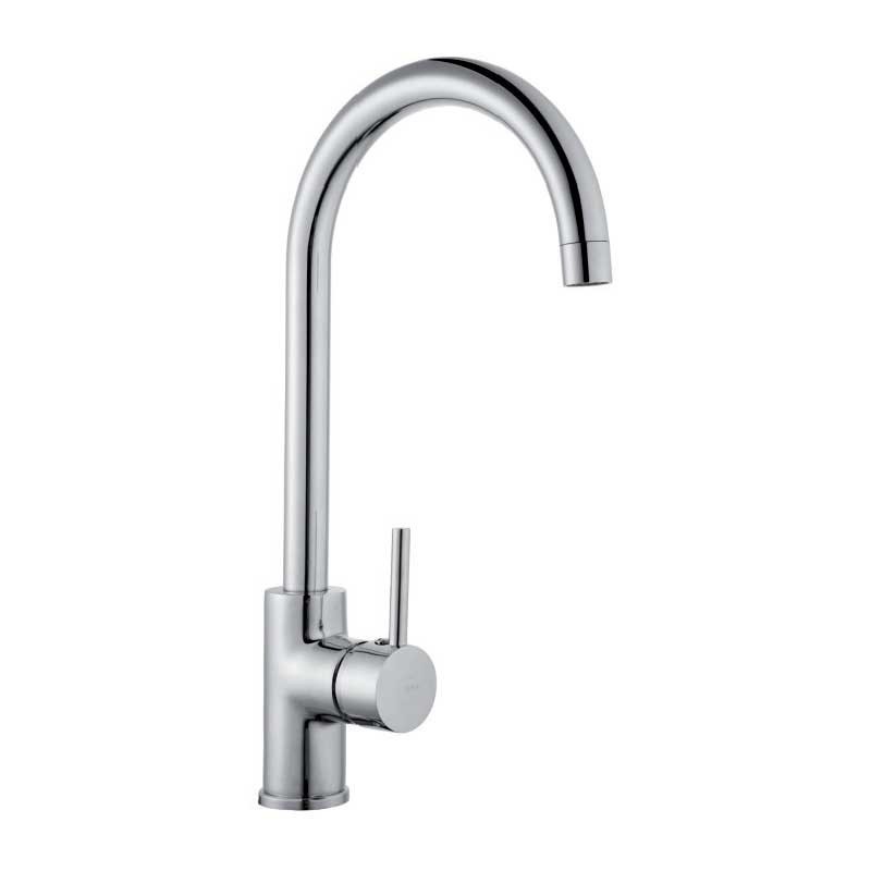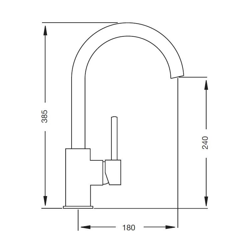 Grifo monomando de caño curvo modelo Iris de 38,5 cm de altura y acabado cromado para fregadero de cocina. Cartucho cerámico de 35 mm. Instalación vertical sobre repisa.