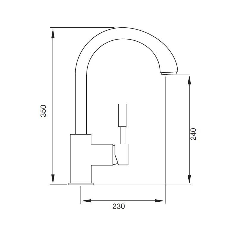 Grifo monomando modelo Sol de 35 cm de altura y acabado cromado para fregadero de cocina. Cartucho cerámico de 40 mm. Instalación vertical sobre repisa.