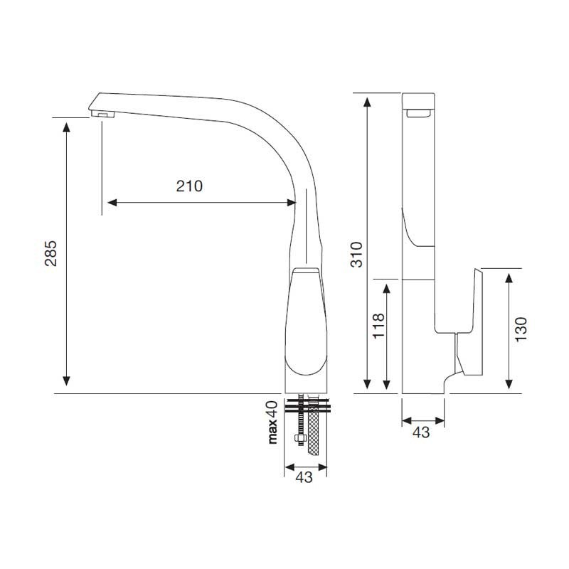 Grifo monomando modelo Venus de 31 cm de altura y acabado cromado para fregadero de cocina. Cartucho cerámico de 35 mm. Instalación vertical sobre repisa.