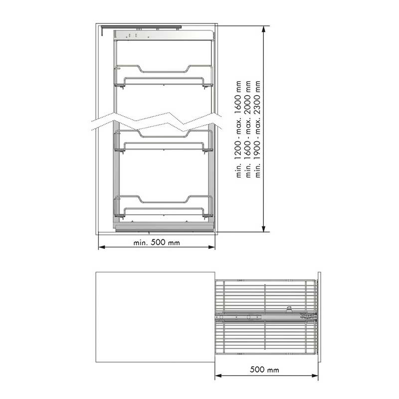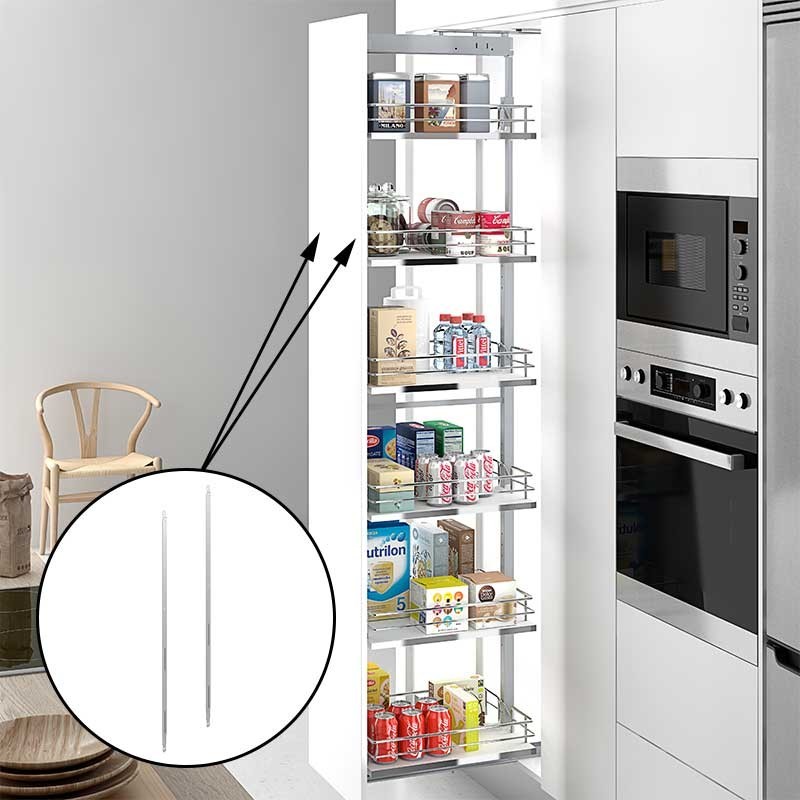 Ampliar Kit completo para mueble columna cocina. Regulable en altura, cestas de acero cromado, extracción total y cierre suave amortiguado.