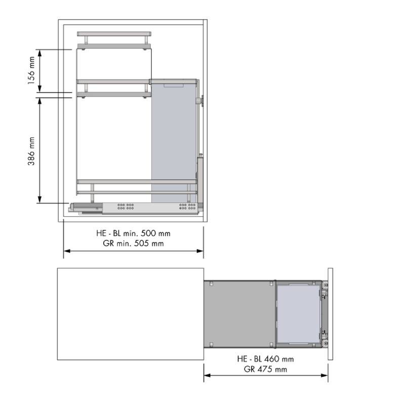 | 300 | Blum (Bl) | 262-268D x 667H x 493L |