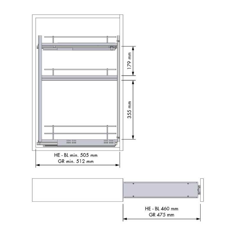 Este modelo de extraíble tiene un estante extra y está especialmente diseñado para módulos de cocina de 80 cm de altura.