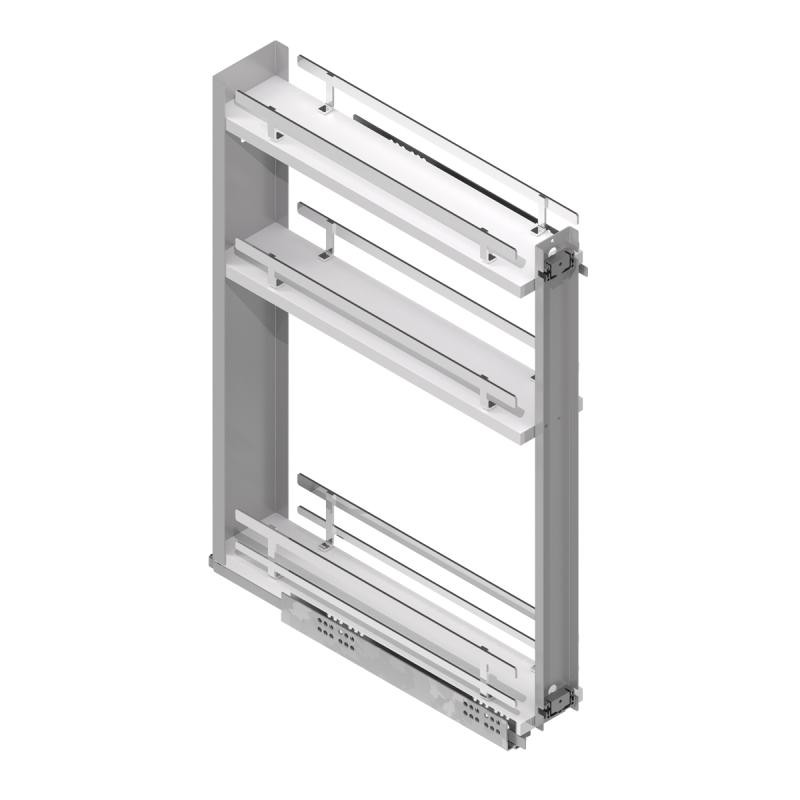 Módulo extraible de 3 alturas para mueble de cocina para el almacenaje de botellas, botes o productos similares. El kit incorpora elementos separadores para evitar que las botellas golpeen unas con otras.