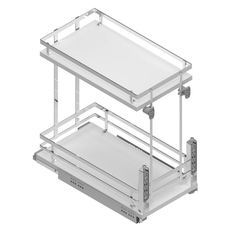 Módulo extraible botellero para mueble de cocina. Ideal para el almacenamiento de botellas, botes o artículos similares. El kit incorpora elementos separadores para evitar que las botellas golpeen unas con otras.