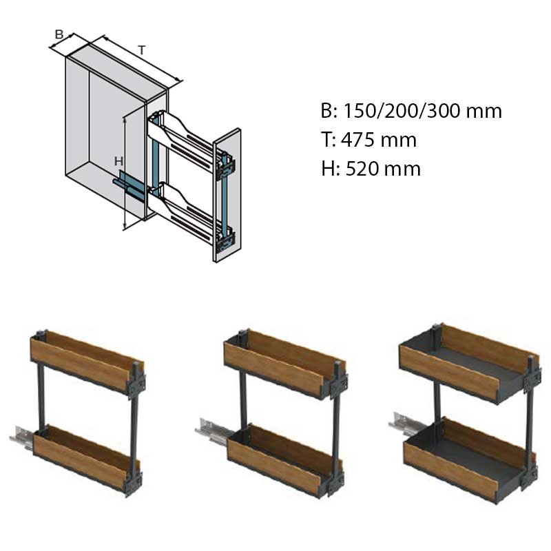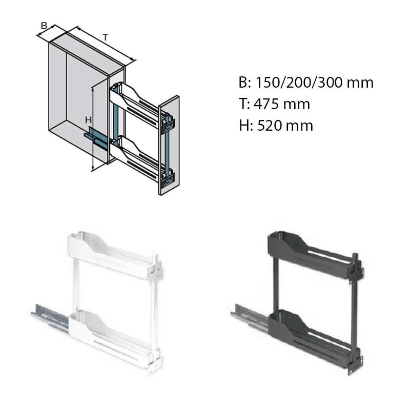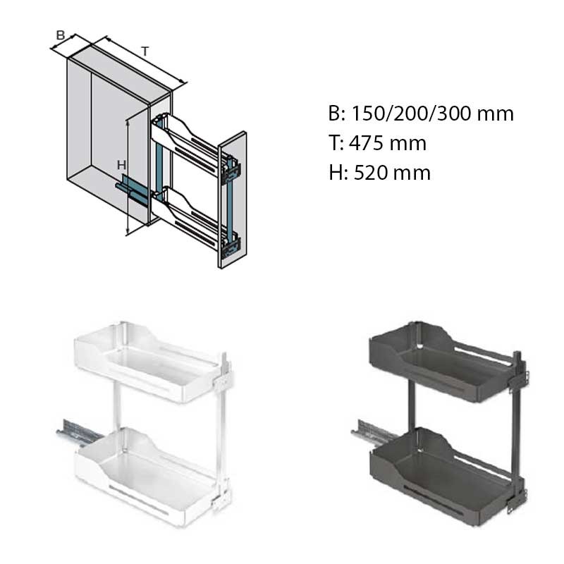 Ampliar Botellero SNELLO acabado LIBELL y FIORO especial para muebles bajos estrechos (150 - 300 mm). Ideal para el almacenamiento de especias, utensilios de limpieza o botellas